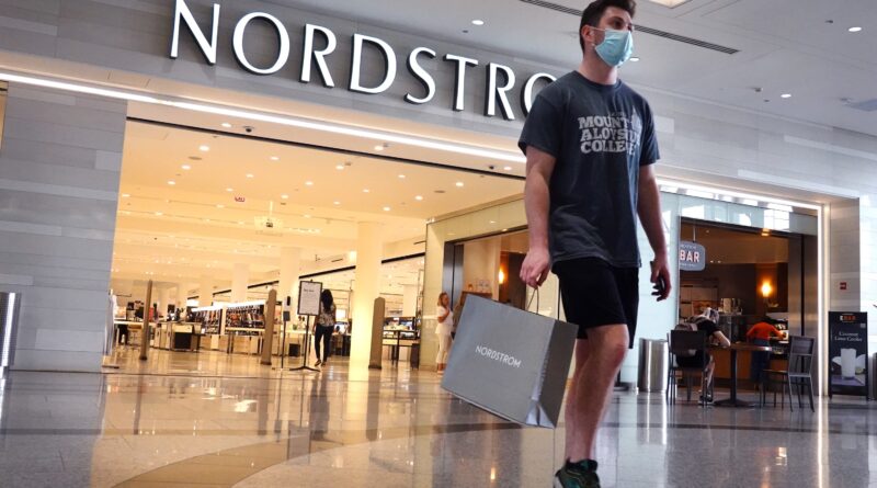 A shopper leaves a Nordstrom store on May 26, 2021 in Chicago, Illinois.
